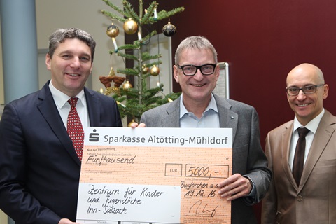 Dr. Stefan Vlaho (li.) und Gerhard Schropp (re.) vom Zentrum für Kinder und Jugendliche Inn-Salzach freuten sich über die Weihnachtsspende der InfraServ Gendorf, die ihnen ISG-Geschäftsleiter Robert Heiß (Mitte) überreichte.