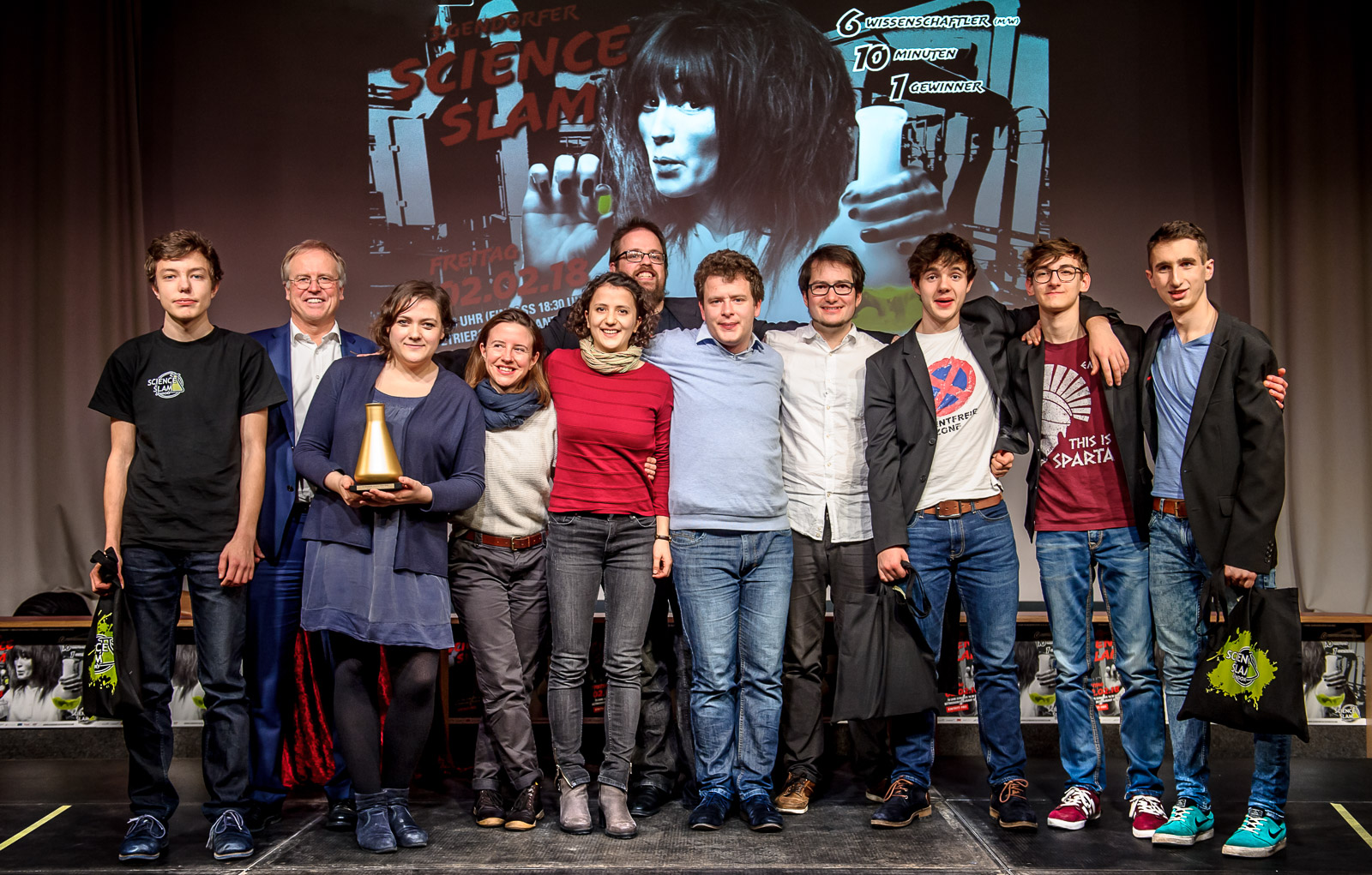 Zehn Minuten haben die Wissenschafts-„Kempen“, um mit ihrem Vortrag, in dem sie eigene Forschungsergebnisse präsentieren, zu überzeugen. Mit dabei ist diesmal Dr. Christian Duwe vom Forschungszentrum an der TU Clausthal, er forscht im Bereich Umweltverfahrenstechnik und Recycling und liefert dazu ein persönliches Fallbeispiel. Dr. Jasmin Barman-Aksözen, Laborleiterin in einem Züricher Krankenhaus, erklärt, was sich hinter Erythropoetischer Protoporphyrie (EPP) verbirgt. Die Biologin Ulrike Neumann von der Universität Hohenheim stellt die Nahrung der Zukunft vor – Mikroalgen. Bei Johannes Kretzschmar und Bastian Alt wird’s elektrisch: Kretzschmar beschäftigt sich in seiner Promotion am Lehrstuhl für Softwaretechnik und in der Arbeitsgruppe für Künstliche Intelligenz an der Uni Jena mit „Frankensteins Elektroauto“, Doktorand Alt von der TU München forscht über regenerative Energiesysteme und speziell über elektrostatische Abscheider – laut Alt ein „hochspannendes Thema“.