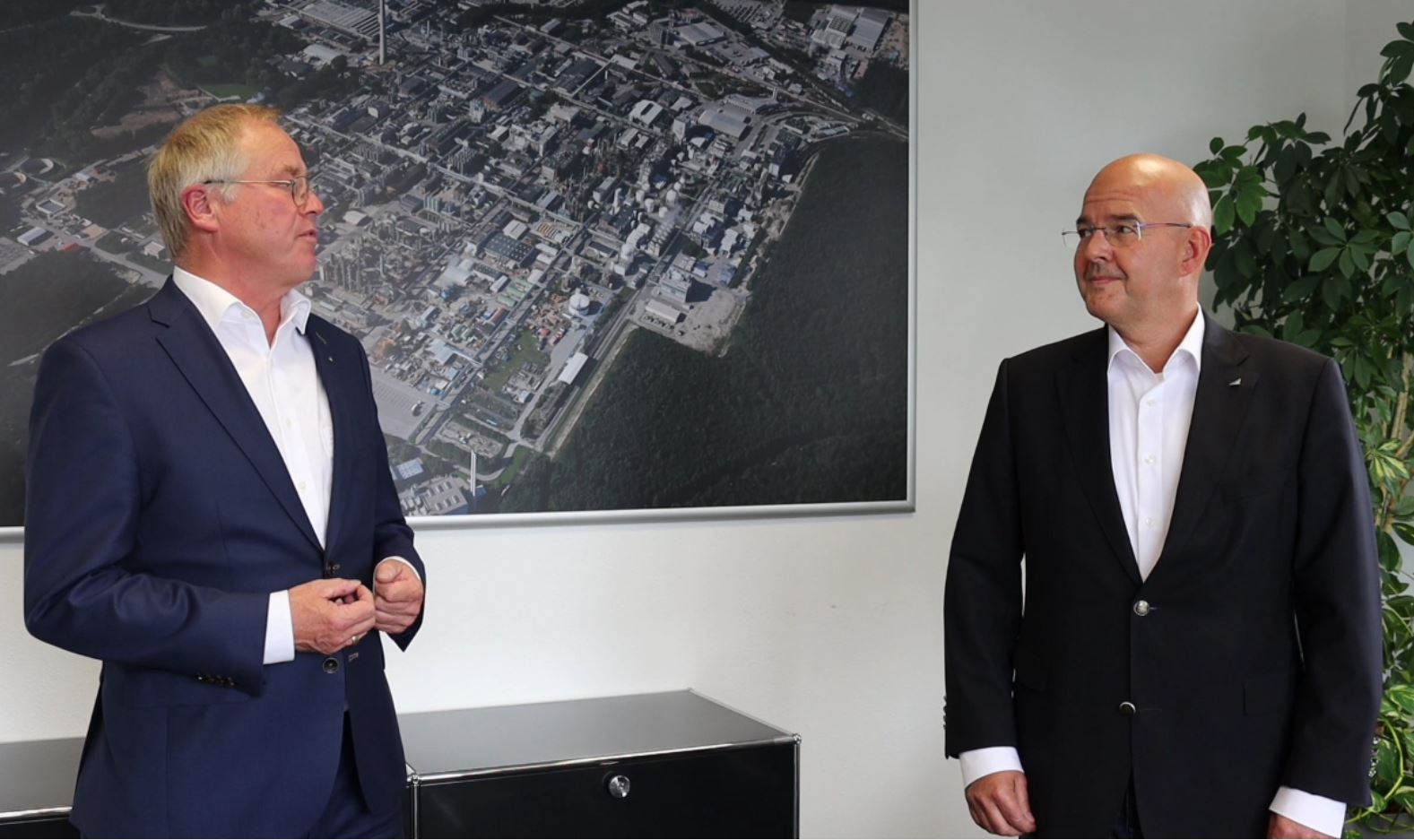 Dr. Bernhard Langhammer (li.) begrüßt Dr. Christoph von Reden (re.) als neuen Geschäftsleiter bei InfraServ Gendorf.