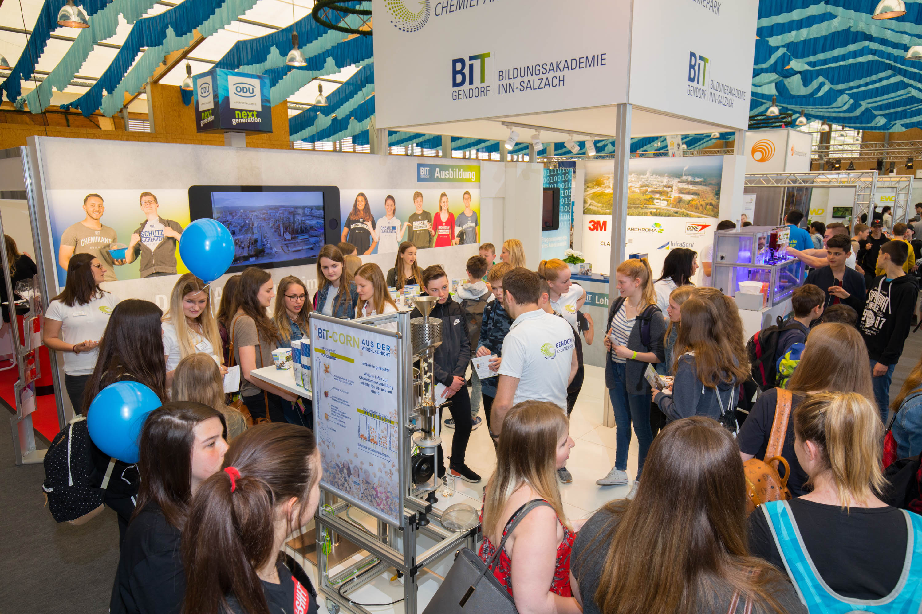 Der Chemiepark GENDORF kann mit einem brandneuen Standkonzept aufwarten: Gemäß dem Motto „Willkommen im Gendorfer Bildungszentrum“ können sich die Besucher auf den grünen Campus der BIT entführen lassen. „Zu einer erfolgreichen Ausbildung gehört auch eine gute Atmosphäre“, ist sich Ausbildungsreferentin Heike Rinner sicher. Bei der BIT Gendorf werden eine persönliche Betreuung und der soziale Austausch zwischen den Azubis, aber auch mit den Ausbildern, mit viel Engagement gelebt.