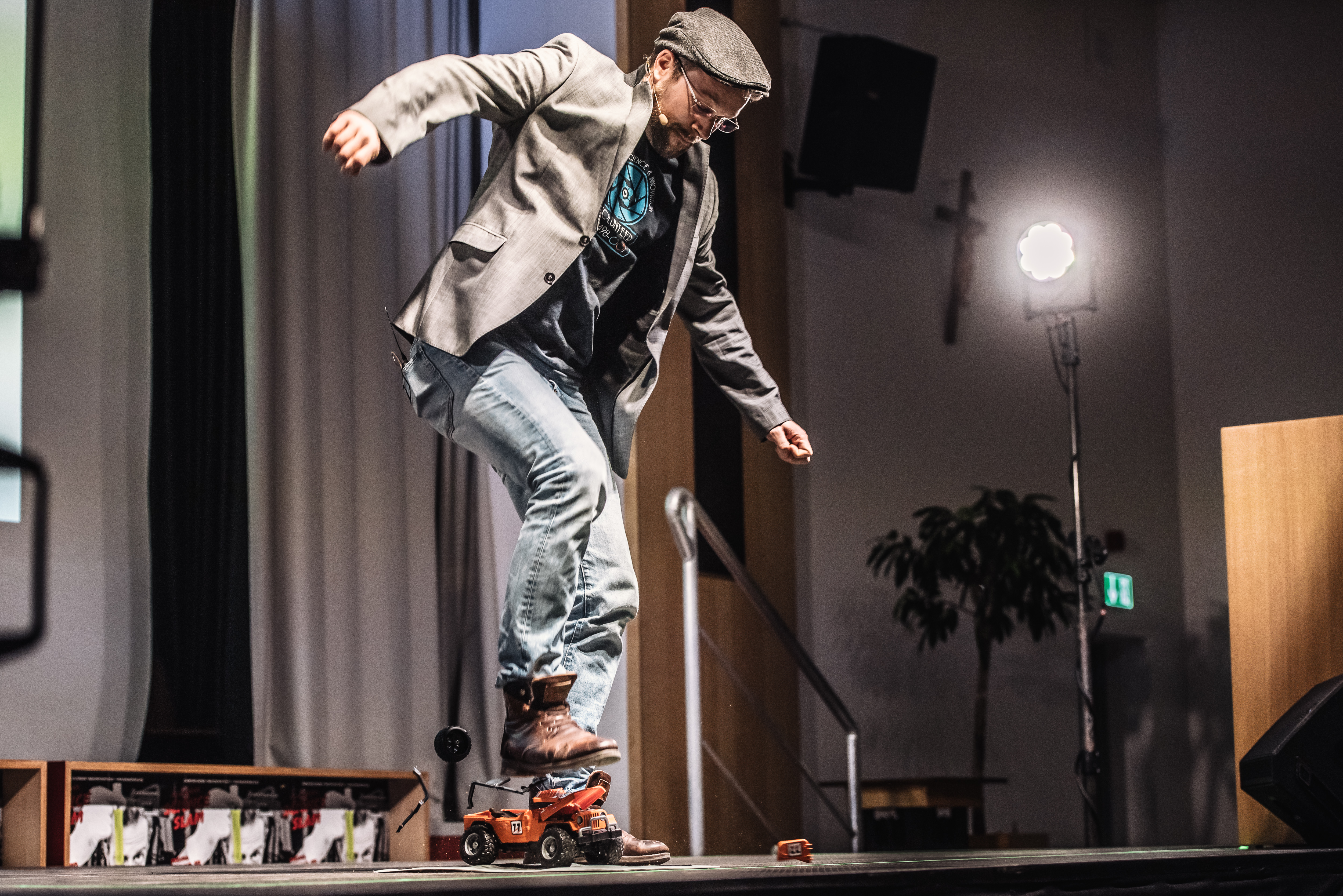 Das Besondere am Slam in Gendorf: Nicht nur die „Profis“ dürfen an den Start. Zum bereits dritten Mal ist wieder ein Junior-Slammer dabei, der sich beim Altöttinger Junior Science Slam die „Wild Card“ für die große Bühne „er-slammen“ konnte. Die Schülerin Sabine Ispas-Ungermann vom niederbayerischen Karl-von-Closen Gymnasium Eggenfelden setzte sich beim Junior Science Slam durch und darf beim Gendorfer Science Slam nun vor großem Publikum demonstrieren, wie man einen Porsche mit Altpapier betankt.