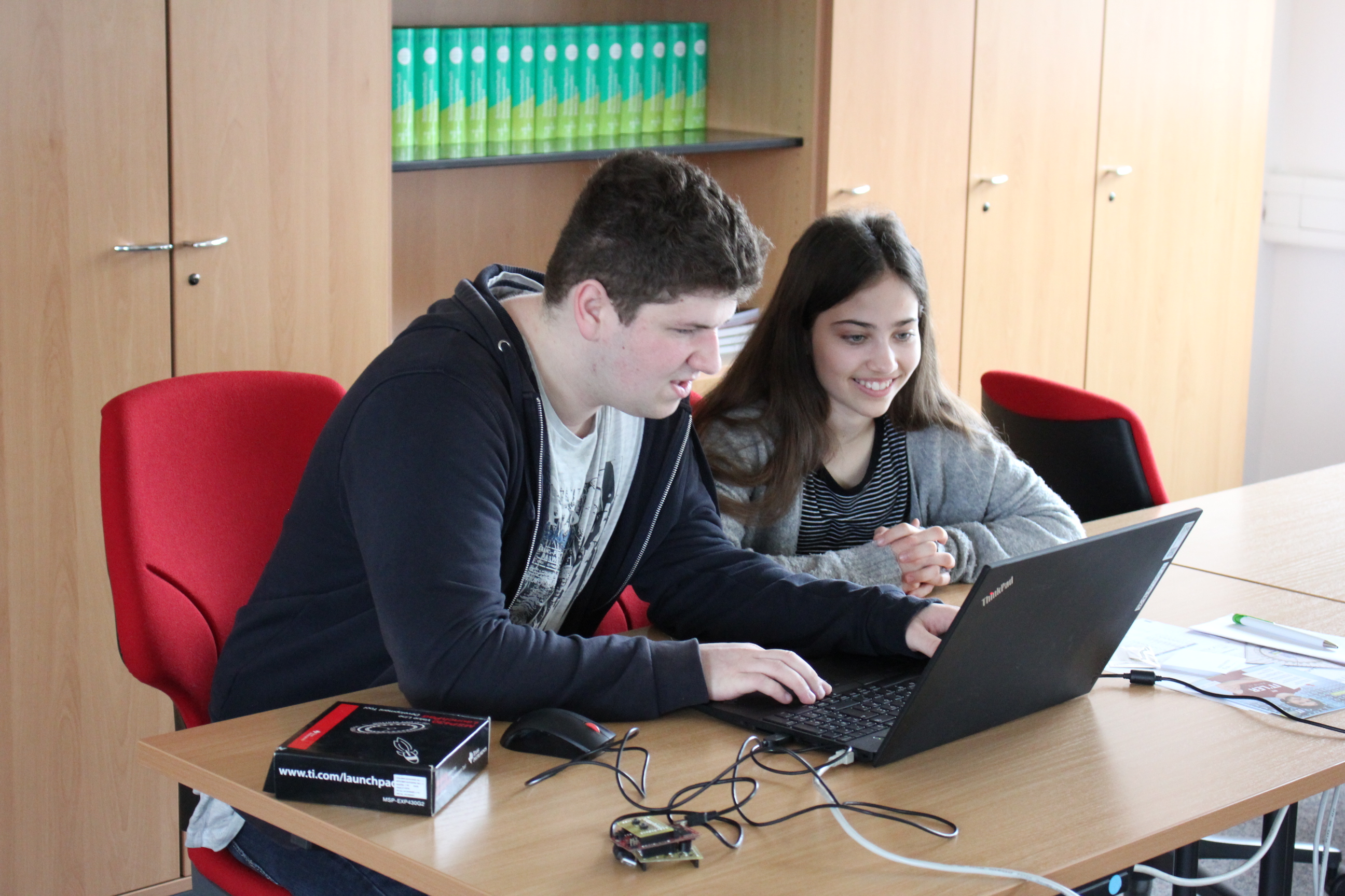Eigene Websites, künstliche Intelligenz, Computer-„Singstar“: Das Programm beim diesjährigen Girls‘Day, das sich die Lehrer und Schüler der IT-Schule überlegt hatten, versprach Abwechslung. 20 Mädchen von Schulen aus den umliegenden Landkreisen nutzen dieses Angebot, um in die Welt der IT hinein zu schnuppern. Dabei standen die IT-Schüler im ersten Ausbildungsjahr den Mädchen mit Rat und Tat zur Seite. So programmierten die Mädchen mittels HTML und CSS eine persönliche Website, in die sie eigene Fotos einfügten. Im Anschluss wurde ein Mikrocomputer zum „singen“ gebracht: Durch die Umwandlung einzelner Töne in Zählerwerte wurde ein Lied komponiert. Als Abschluss durften die Schülerinnen mit dem Programm AntMe noch ihr eigenes Ameisenvolk „zum Leben erwecken“. Dabei wurden die jeweiligen Ameisenvölker mittels künstlicher Intelligenz strategisch auf die Futtersuche programmiert. Die einzelnen Ameisenvölker der Mädchen traten dann im Kampf um die Nahrungssuche gegeneinander an, wobei das Volk mit der besten Strategie gewann.