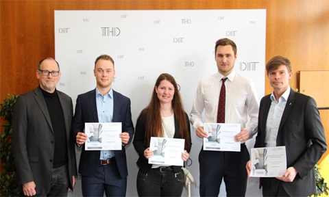 Erfreute Gesichter an der Technischen Hochschule Deggendorf: InfraServ Gendorf fördert erneut als Hauptsponsor drei engagierte Studierende für die nächsten zwölf Monate.