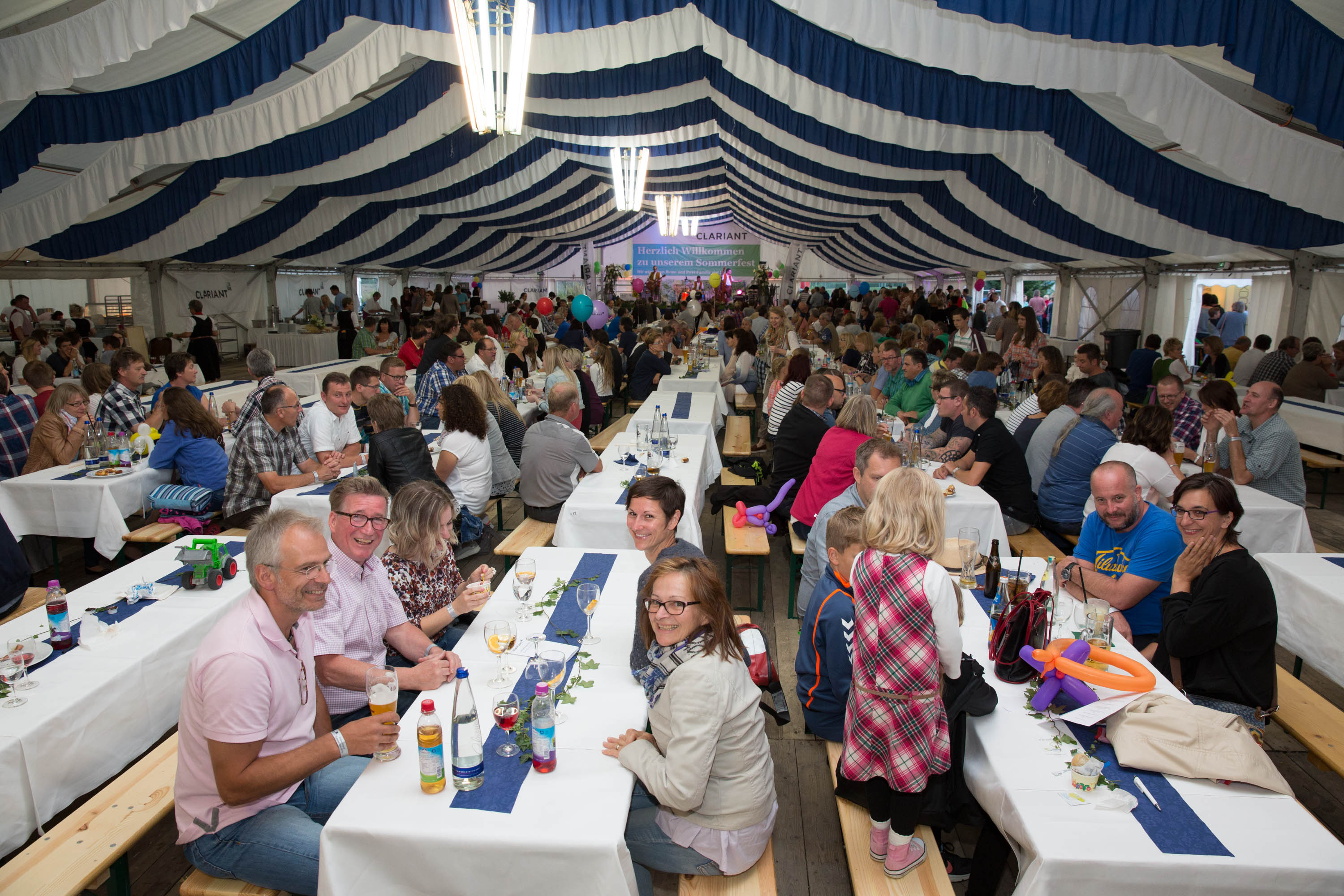 Besonders bei den Kindern kam keine Langeweile auf: Kinderolympiade, Hüpfburg, Menschenkicker, Kinderschminken und ein Zauberclow, dazu noch ein Karussell – da blieben keine Wünsche offen. Auch die Erwachsenen kamen auf ihre Kosten: im Festzelt wartete eine hervorragende Bewirtung, draußen konnte man ein Flugzeugenteiserfahrzeug vom Münchner Flughafen begutachten, mit dem Teleskopmast der Werkfeuerwehr in luftigen Höhen einen Rundblick wagen, sich verkleidet in der Fotobox ablichten lassen oder auf dem Bierkarussell eine Runde drehen. Musikalische Unterhaltung kam vom Werksblasorchester Gendorf e.V. und der Band Postamt-Trio, welche das Festzelt bis in die Nacht „rockte“. Nicht zu vergessen der extra aufgebaute Showroom, in dem Mitarbeiter die Palette der Gendorfer Clariant Produkte präsentierten. Hier konnten die Teilnehmer auch die Antworten für das Tombola-Quiz erfahren. Neben eigenen Preisen für Kinder und Erwachsene gab es als Sonderpreis auch zweimal zwei Karten für ein Spiel des FC Bayern in der Lounge der Allianz-Arena zu gewinnen. Abschließender Höhepunkt des Abends war ein spektakuläres Feuerwerk.