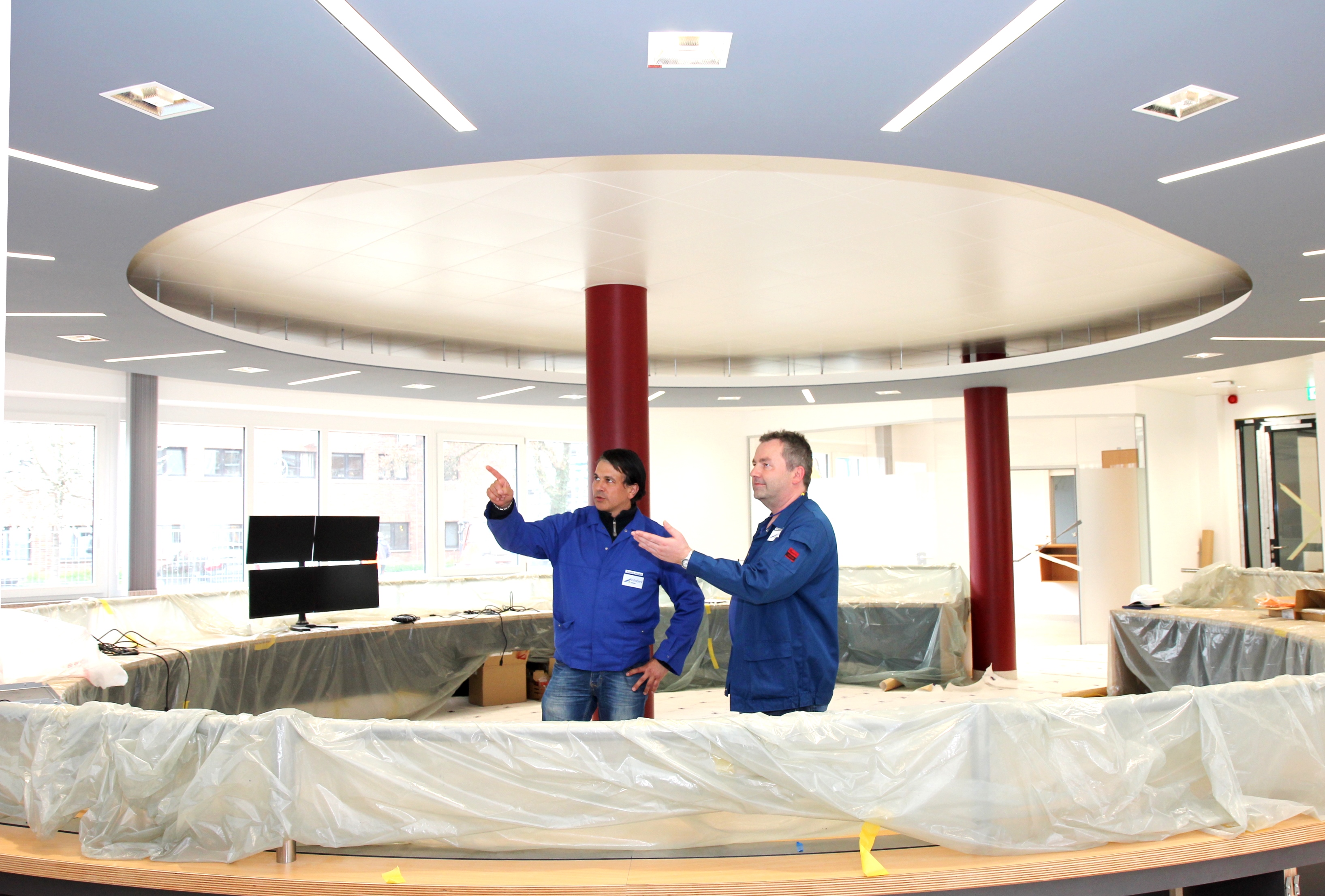 „Wenn die Gasturbine das Herz des Kraftwerks ist, dann ist die Messwarte das Hirn: In der hochmodernen Schaltzentrale mit modernster IT-Infrastruktur laufen die gesamte Steuerung des Kraftwerks sowie sämtliche relevanten Anlagen- und verfahrenstechnische Informationen und Messwerte zusammen“, erklärt Albert Schauer, Leiter Kraftwerk bei InfraServ Gendorf. Der Neubau der Messwarte, der ebenfalls Teil der Modernisierungsmaßnahmen ist, steht indes kurz vor seiner Vollendung: letzte Arbeiten an der Inneneinrichtung werden vorgenommen, dann kann das Team Anfang Mai an seine neue Wirkungsstätte ziehen. Auf der großen Bildschirmwand haben die Mitarbeiter das komplette Prozessleitsystem des Kraftwerks im Blick, an den ergonomisch ausgestatteten Leitständen können sie mit einem Mausklick den gesamten Betrieb steuern.