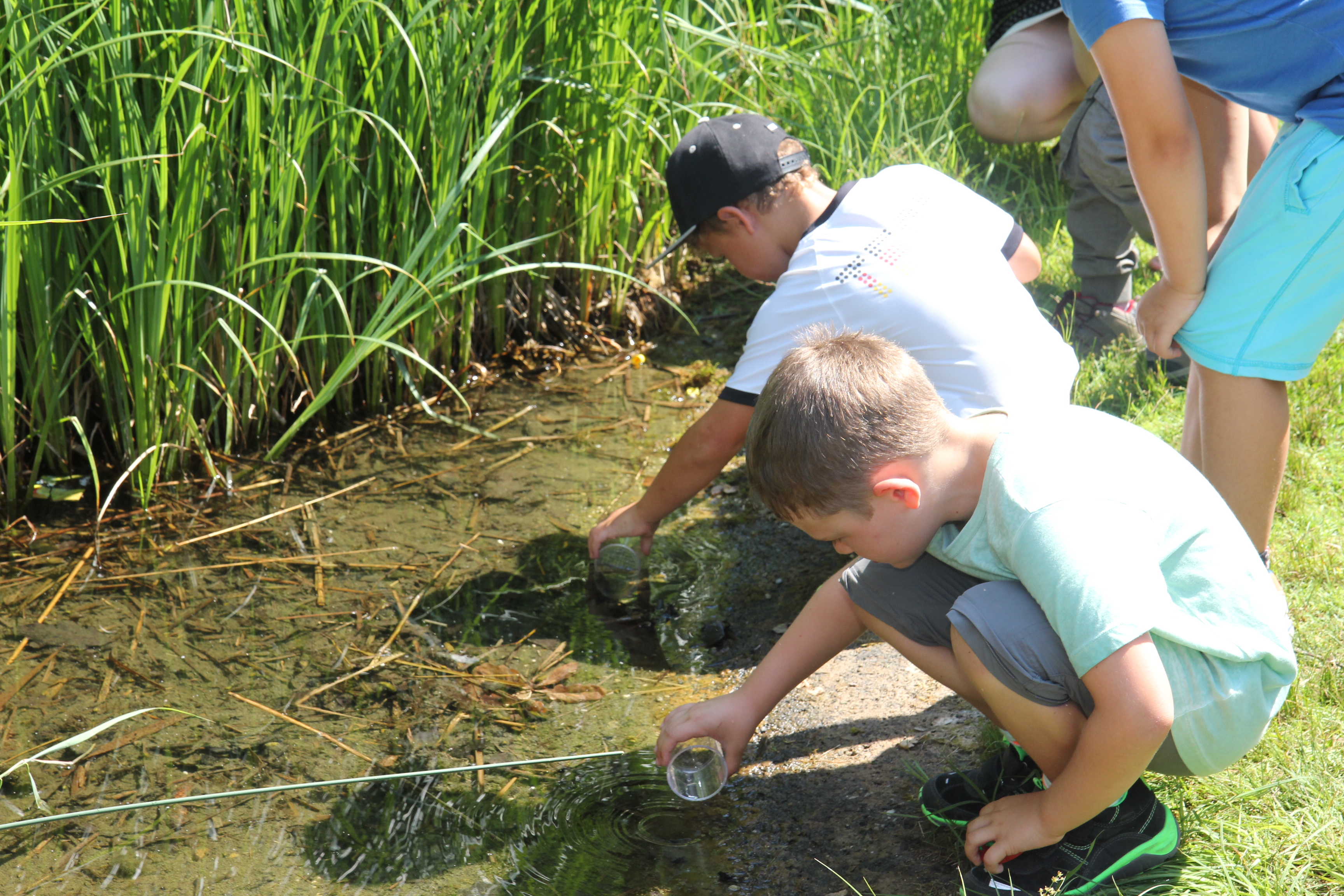 „Da ist ein Frosch!“ Der kleine Hannes zeigt begeistert an den Uferrand. Platsch – schon ist das Amphibium mit einem Hopps im Wasser verschwunden. Aber es gibt ja noch so viel mehr zu entdecken: Libellen- und Gelbbrandkäferlarven, Molche und Posthornschnecken sind nur einige der Arten, die sich in dem Gewässer finden lassen, das die Kinder begeistert erforschen.