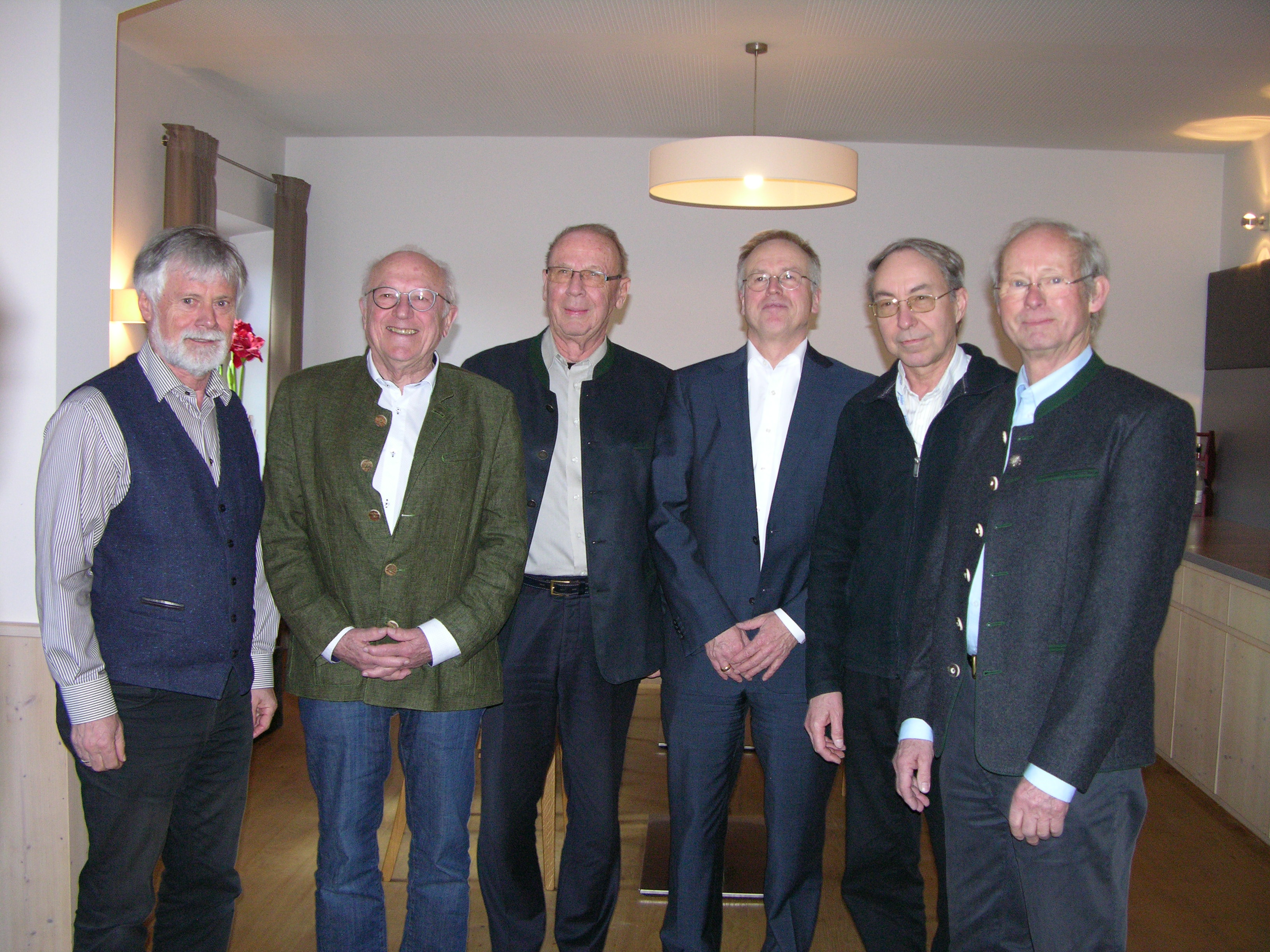 Als Werkführer im Einsatz für den Chemiepark: Die Pensionäre (v.l.n.r.) Dr. Karl Eberl, Peter Schwarzmaier, Dr. Manfred Engelmann, ISG-Geschäftsleiter Dr. Bernhard Langhammer, Dr. Walter Foag und Sigmund Mayer. – Foto: ISG