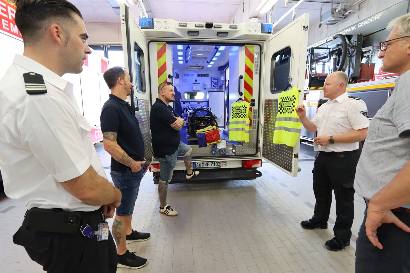 Bei der Werkfeuerwehr ließen sich die Teilnehmer unter anderem den Rettungswagen zeigen. Nahezu alle Feuerwehrleute im Chemiepark sind zusätzlich als Notfallsanitäter ausgebildet und rücken als First Responder auch bei Unfällen im Chemiepark-Umfeld aus.