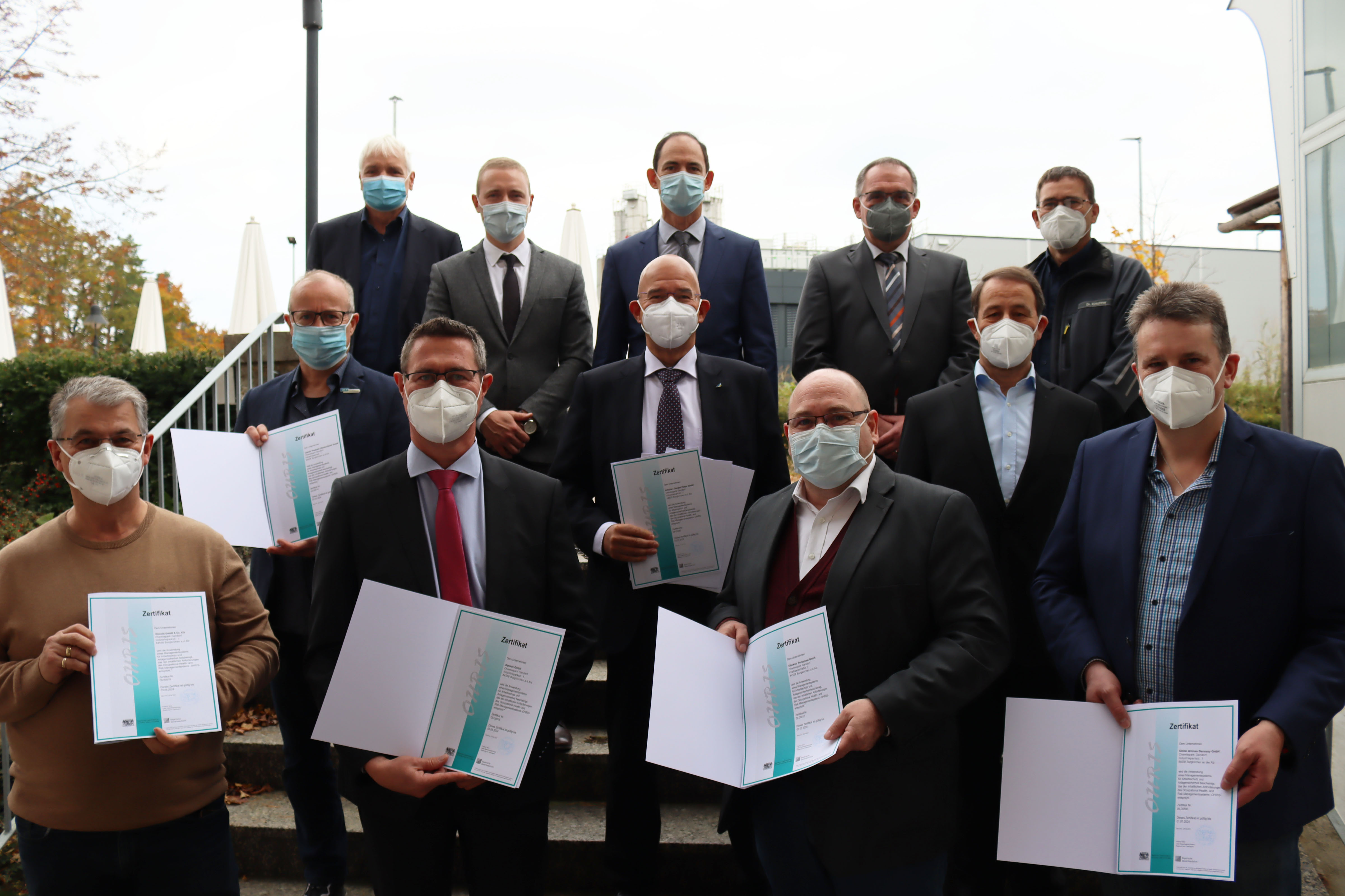 Erhielten die Zertifizierung für erfolgreiches Arbeitssicherheitsmanagement von den Vertretern der Regierung von Oberbayern: Die Unternehmensvertreter von Vinnolit, Dyneon, Klöckner Pentaplast, Clariant, Global Amines und InfraServ Gendorf
