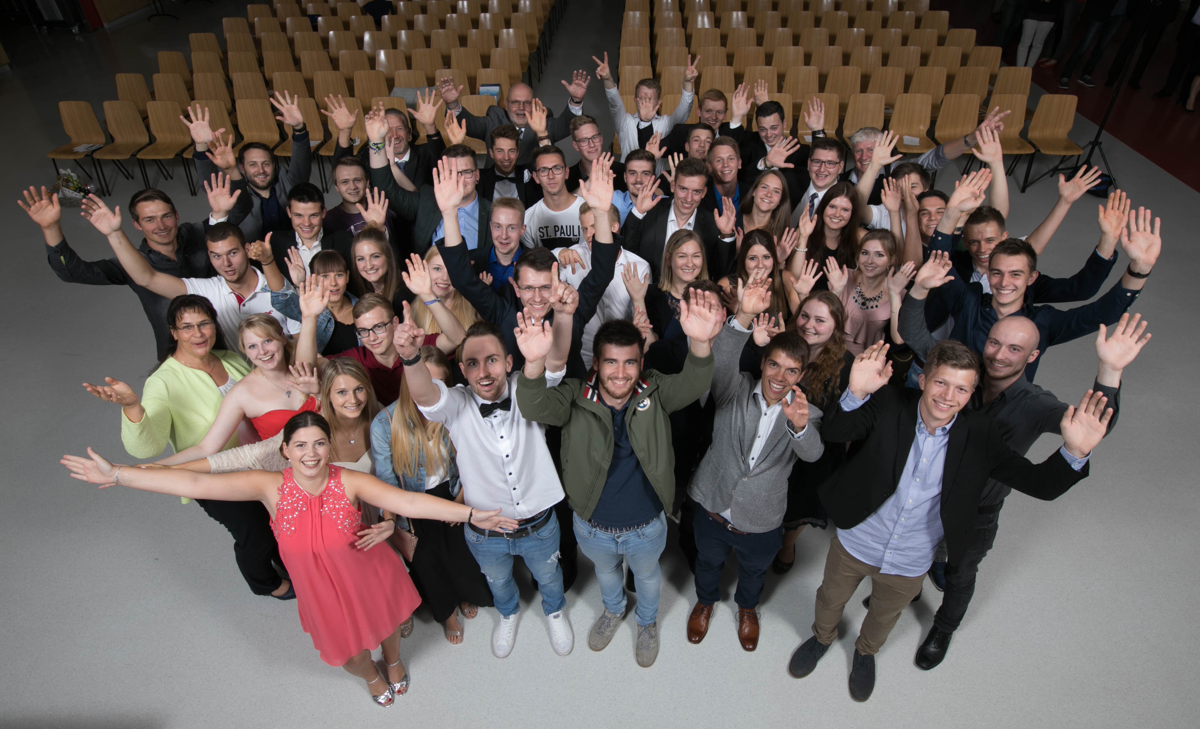 Sie freuen sich zu Recht: Die 53 Nachwuchskräfte feiern mit ihren Ausbildern einen wichtigen Karriereschritt. Die meisten von ihnen setzen ihre Karriere im Chemiepark GENDORF fort.