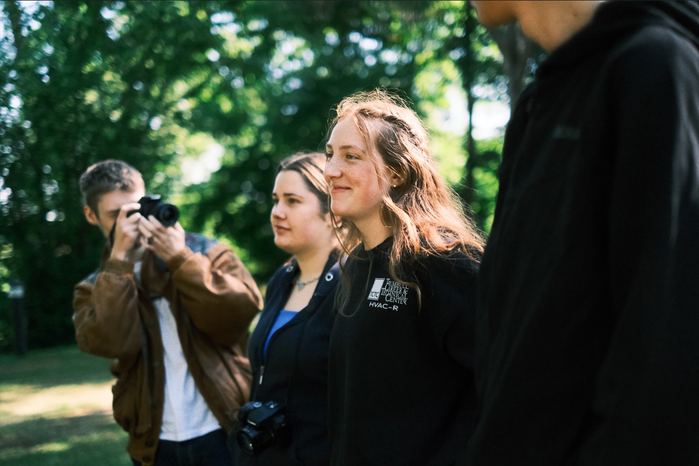 Die richtige Perspektive im Fokus: Schüler und Schülerinnen der Montessori FOS Gestalten entdecken den Naturraum Alz auf unterschiedlichste Weise. (Bild: Tom Bauer)