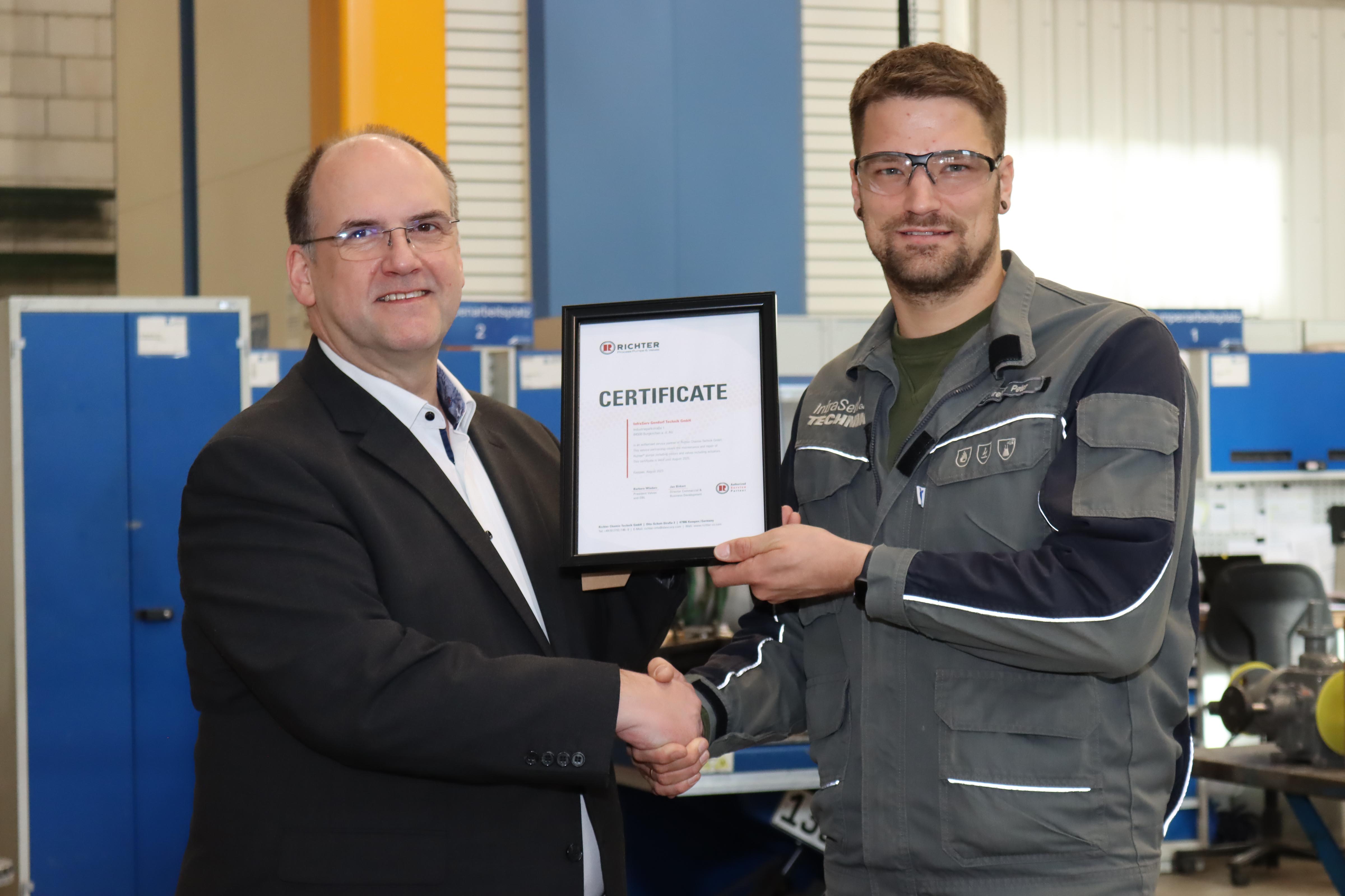 Mit einer Servicepartnerschaft im Bereich Pumpen und Armaturen haben ISGT und RICHTER ihre enge Zusammenarbeit weiter ausgebaut. Als bisher einziger qualifizierter Servicepartner für den süddeutschen Raum ist ISGT damit erster Ansprechpartner für RICHTER-Pumpen und Armaturen in der Region. "Wir freuen uns sehr, dass RICHTER auf unsere Kompetenz baut und sich für eine Partnerschaft mit uns entschieden hat. Die Instandhaltung von Pumpen und Armaturen gehört zu unserem Kerngeschäft, und wir können unsere langjährige Erfahrung und Fachkompetenz in die Servicepartnerschaft einbringen“, so Peter Schreiner, Abteilungsleiter Instandhaltung bei ISGT. Auch Christian Gather, Vertriebsleiter Europa bei RICHTER, zeigt sich erfreut: „Wir bauen ein leistungsfähiges Netz an Servicepartnern auf. Mit InfraServ Gendorf Technik haben wir nun einen starken Partner, der das entscheidende Puzzleteil für unsere Kunden im Süddeutschen Raum darstellt.“